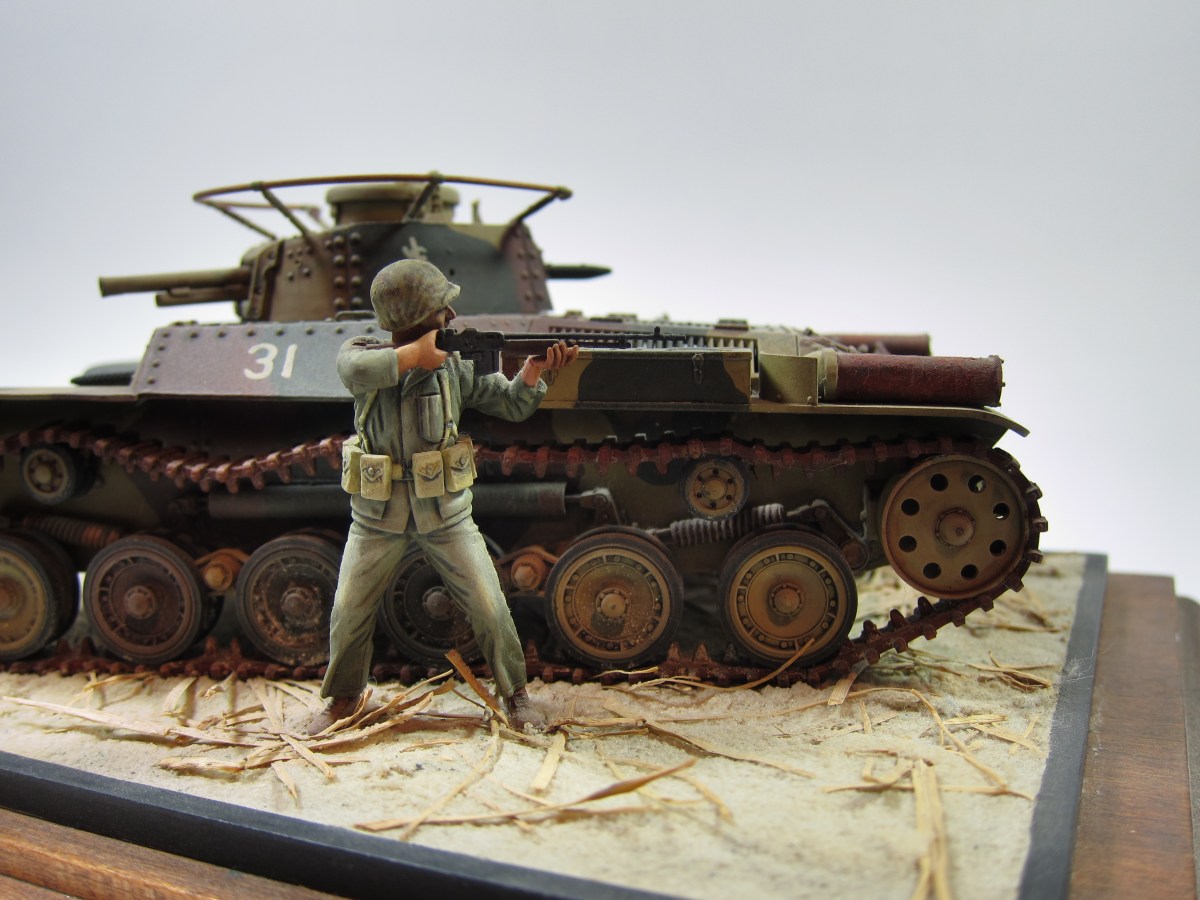 An old diorama. The tank is Tamiya’s ancient but still very nice Type 97 Chi-Ha. The figure is from the DML Iwo Jima Marines set.