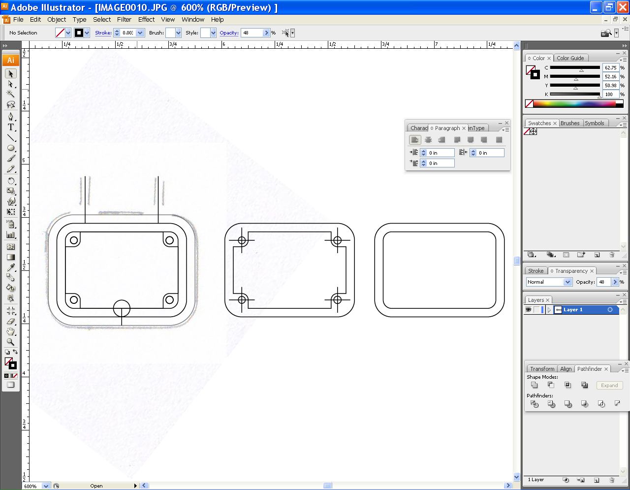 Then I scanned the tracing and opened it in Adobe Illustrator.